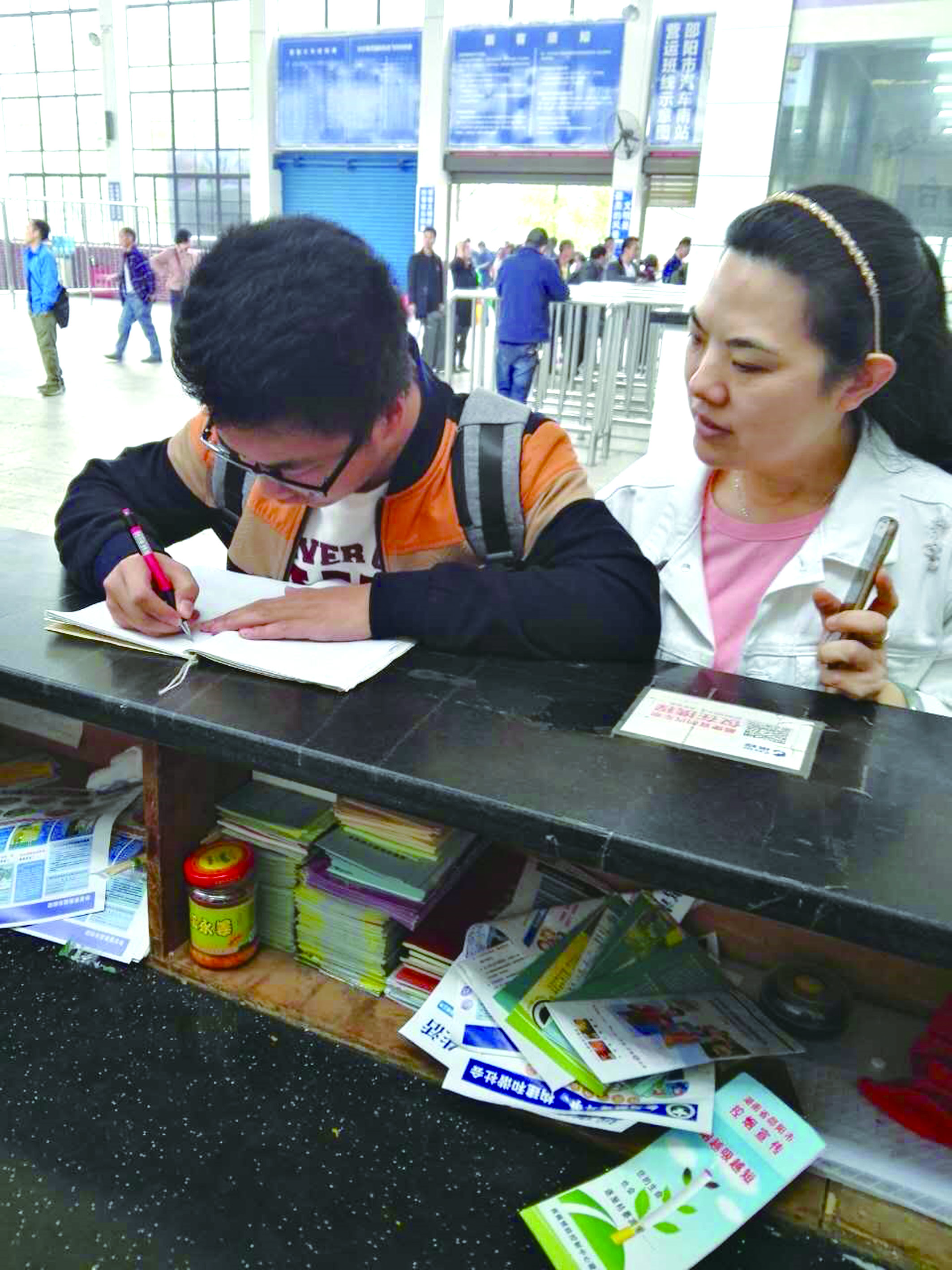 (徐容芳報道)    4月6日上午,市汽車南站的客流高峰還在持續(xù),售票廳買票上車的旅客絡(luò)繹不絕,正在安檢機前值班的員工周擁軍有條不紊的指揮著購票進站的旅客把大包小包的行李過機安檢。11時許,旅客漸漸稀少,周擁軍拿起桌上的杯子想喝口水,這時他卻無意中發(fā)現(xiàn)安檢機傳送帶旁有一個背包在地上。于是,周擁軍撿起趕緊喊剛過去的幾個旅客,但都說不是他們的,周擁軍趕緊將包拿到該站總服務(wù)臺,廣播員連續(xù)廣播失物認領(lǐng)七八次仍沒人領(lǐng)取。12時左右,一學(xué)生模樣的大男孩匆匆來到服務(wù)臺認領(lǐng)自己的背包,在確認旅客身份后,值班副站長張紅文把包交還給了此男孩,其非常感激連說謝謝,并從包里拿出紙和筆來,伏在服務(wù)總臺匆匆寫了一封感謝信,才登上了發(fā)往長沙西站的班車。
